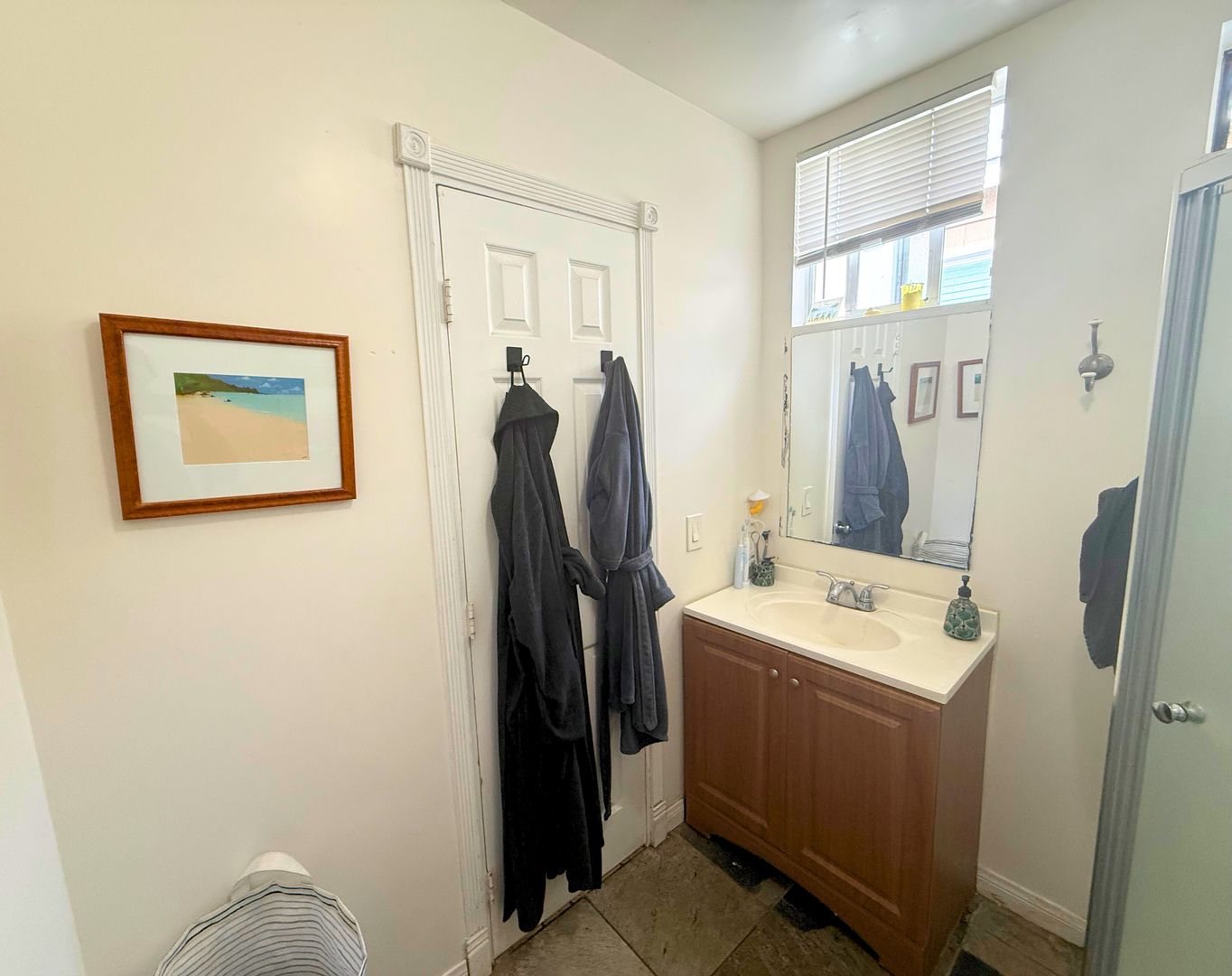 The spacious bedroom offers generous closet storage, while the bathroom includes a large walk-in shower and modern vanity. Step outside to your expansive private fenced patio—perfect for relaxing, entertaining, or enjoying San Diego’s beautiful weather year-round.