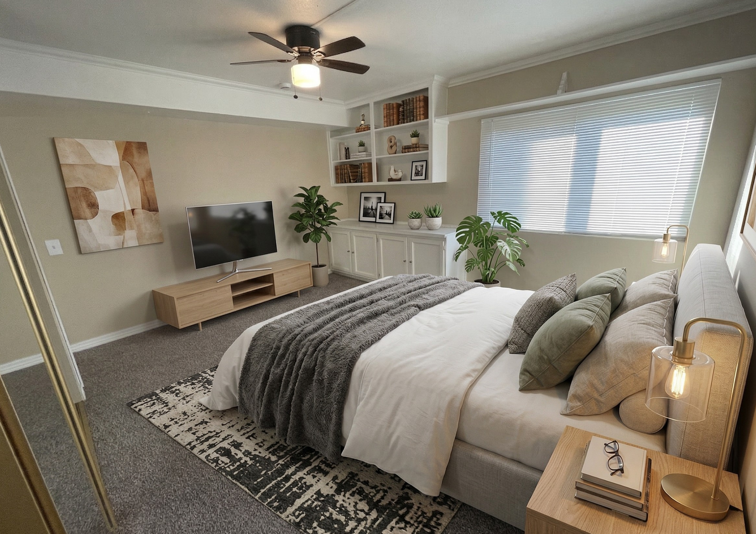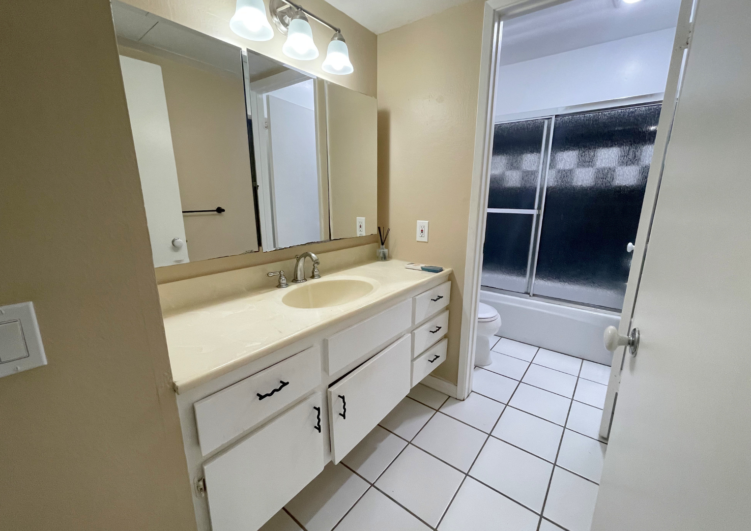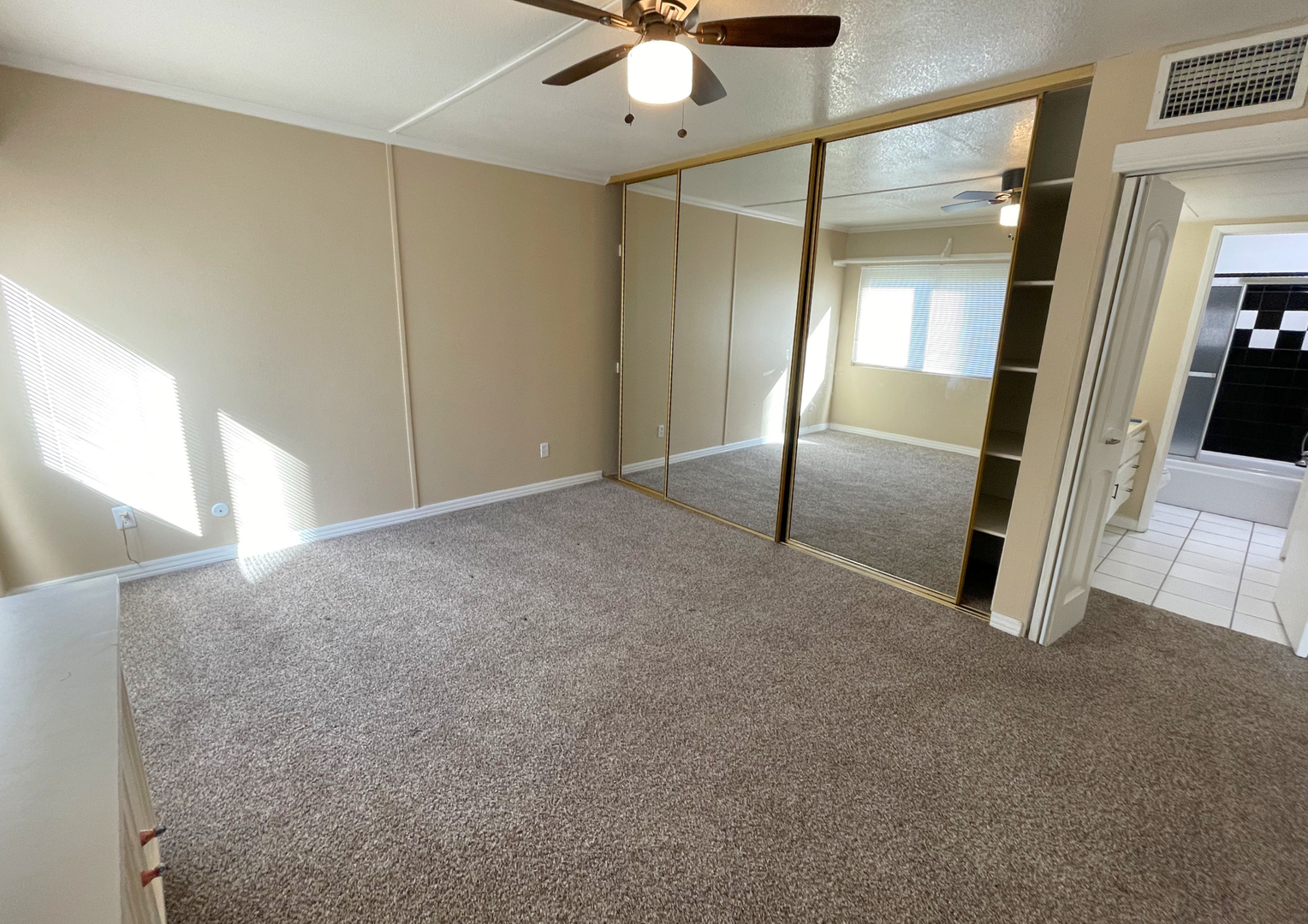 Retreat to the spacious bedroom featuring mirrored closet doors, built-in storage, and plenty of room to create your own private sanctuary. The bathroom is clean and well-appointed with a full tub and shower, while tasteful finishes throughout the home add warmth and comfort.