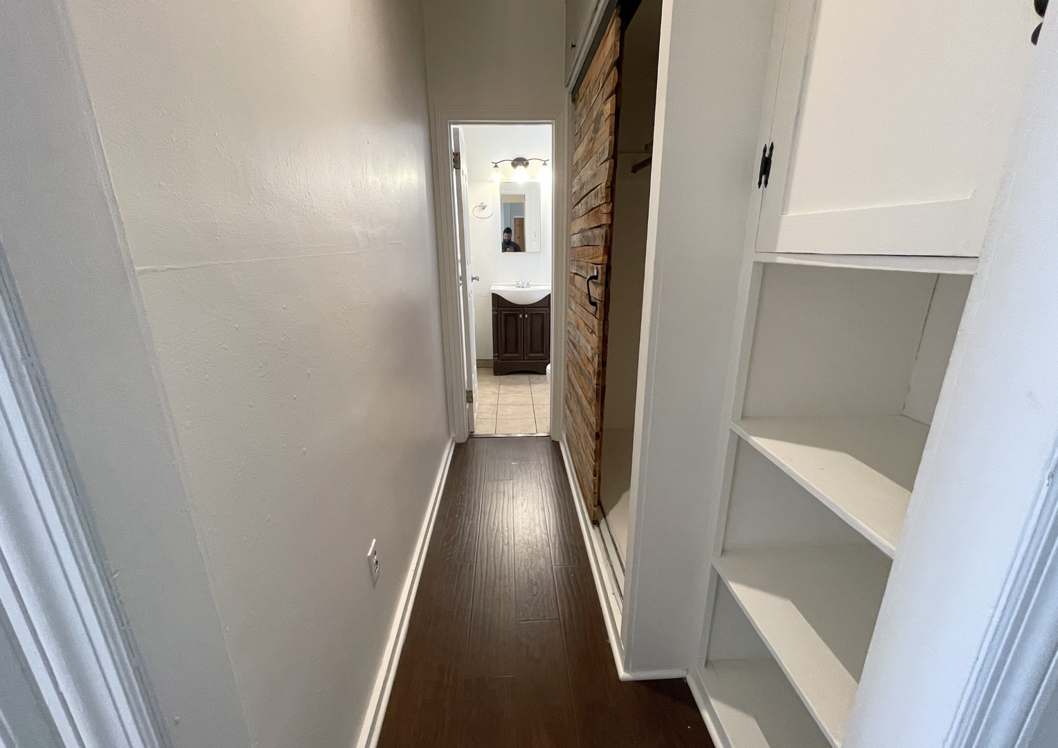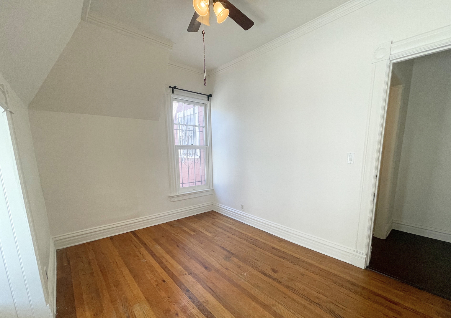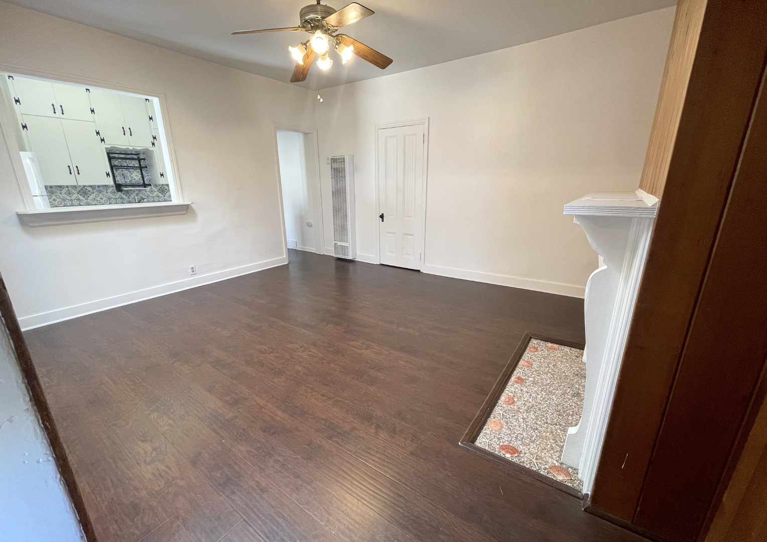 The kitchen showcases timeless cabinetry, ample counter space, and a stylish patterned backsplash, creating a functional yet charming cooking space. The bedroom is generously sized with beautiful hardwood floors and classic detailing, while the bathroom is clean and well-appointed with updated fixtures.